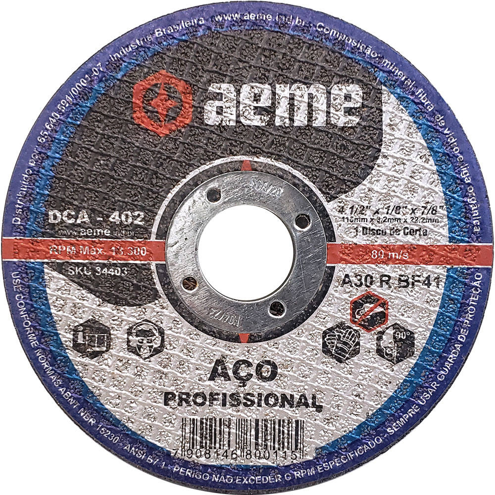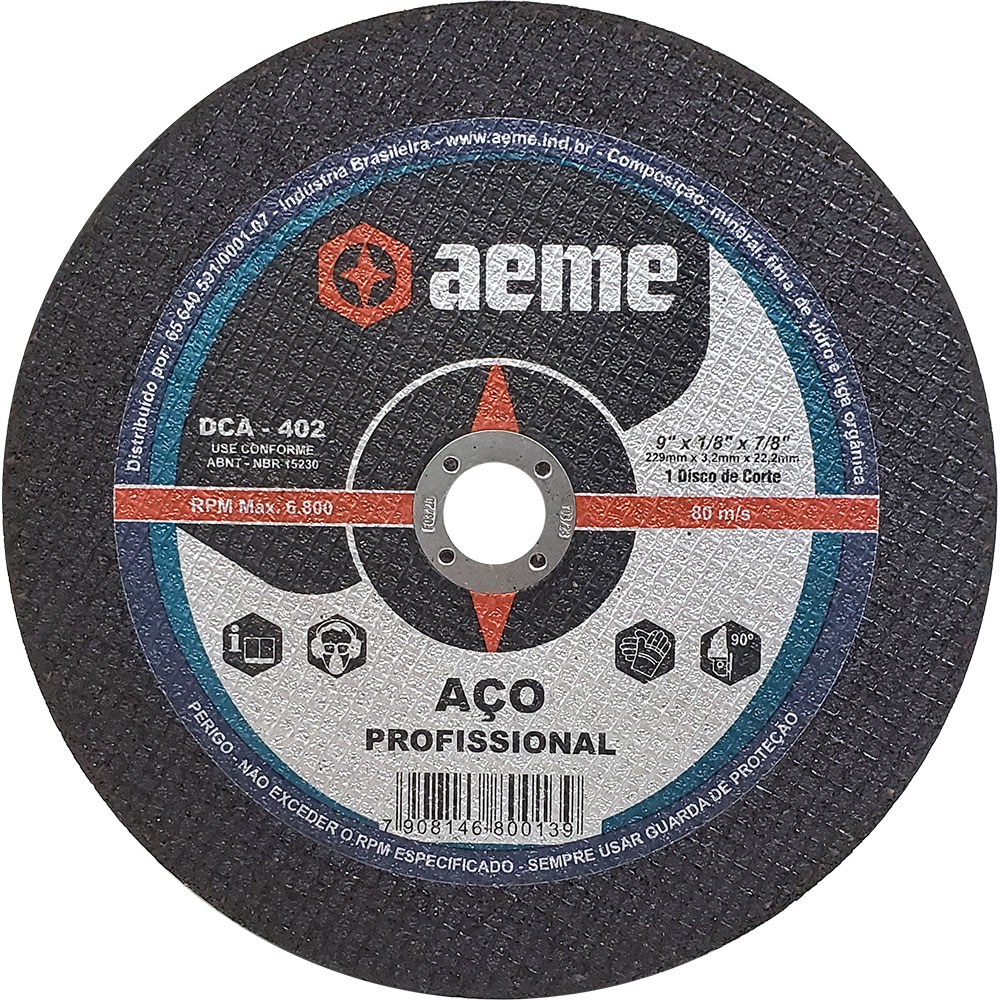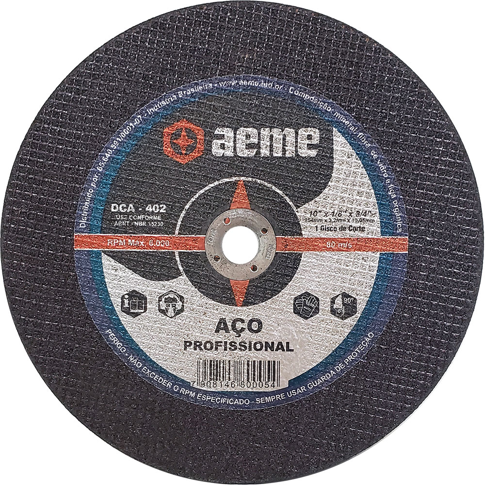 Disponível em diversas medidas o Disco de Corte para Aço DCA 402 apresenta ótimo rendimento, produtividade e qualidade.